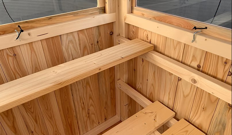 Aus 20mm Lärchenholz Nut- und Federnbretter gehobelt und gefast, Guter Schutz gegen Wind, Wetter und Wespen.